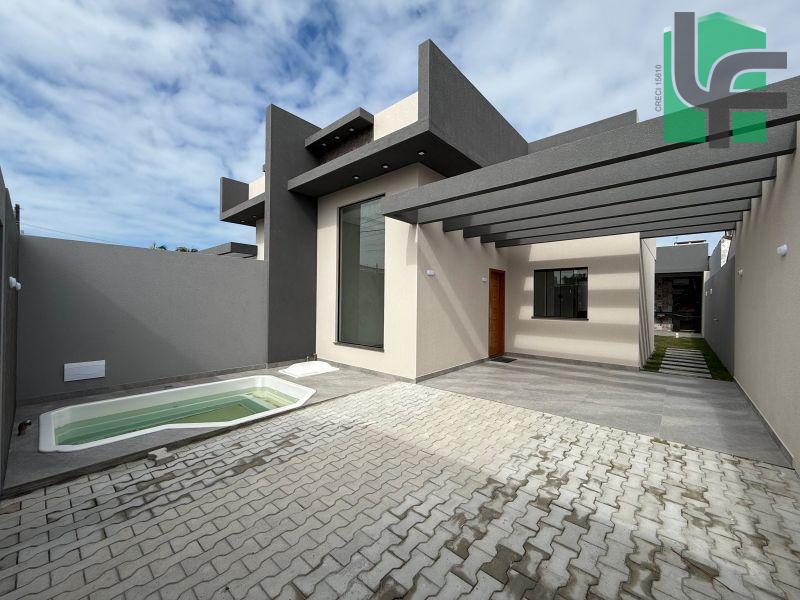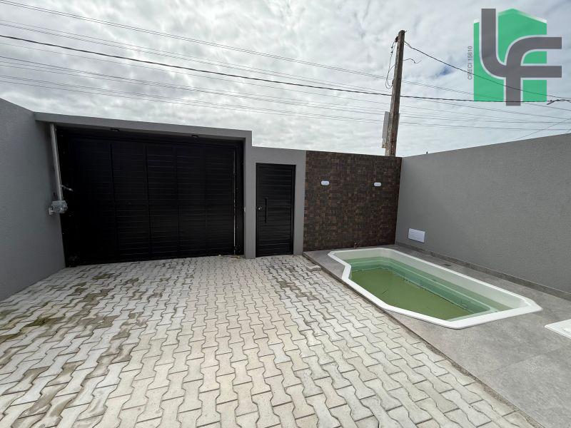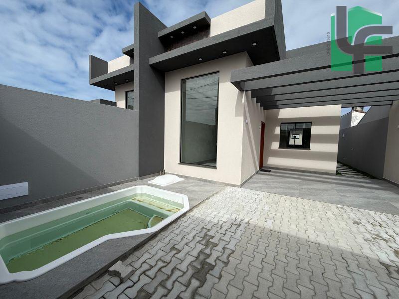 03 QUARTOS (1 SUÍTE), SALA, COZINHA, 02 BANHEIROS, ÁREA DE SERVIÇO, ÁREA COBERTA COM CHURRASQUEIRA, GARAGEM, PISCINA PEQUENA NA FRENTE